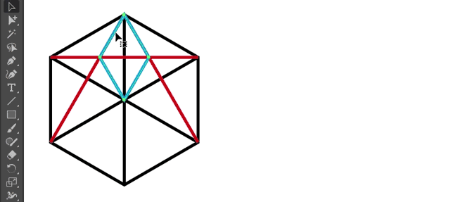 新しいレイヤーを作成し、正六角形のアンカーポイントに合せて、ペンツールで下のように線を引きます。(赤の線の部分です)