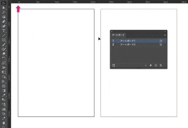 [アートボード定規]の場合、選択したアートボードの左上が定規の原点になります。