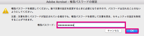 [権限パスワードの変更]項目で、パスワードを設定して[OK]をクリックします。