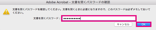 ダウンロードしたファイルを開こうとするとパスワード入力画面が表示され、設定したパスワードを入力するとファイルが開きます。